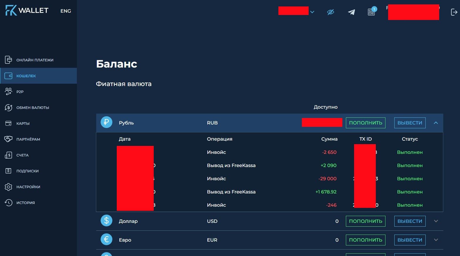 FreeKassa — платежная система для приема платежей и выплат клиентам, работающая с 2009 года. Платформа обслуживает почти 600 магазинов, зарегистрировала более 11 миллионов электронных кошельков и обработала свыше 249 миллионов операций. Основные услуги включают прием платежей по банковским картам (Mastercard, Visa), через СБП, а также от платежных систем Яндекс.Касса, Сбербанка с комиссией от 2,3% только за успешные транзакции. FKwallet — встроенный электронный кошелек, позволяющий получать, отправлять и обменивать электронные валюты. Сервис массовых выплат автоматически отправляет деньги любому количеству клиентов, с получением выплат в течение нескольких минут после поступления данных. Система доступна круглосуточно как с компьютера, так и со смартфона, предоставляя персональный доступ к счету из любой точки мира. FreeKassa предлагает готовые CMS-модули для интеграции, API документацию, партнерскую программу и поддержку в Telegram. Техническая поддержка работает с 11:00 до 21:00 по московскому времени. Платежная система имеет прозрачные условия использования и публикует политику конфиденциальности.